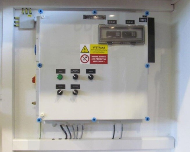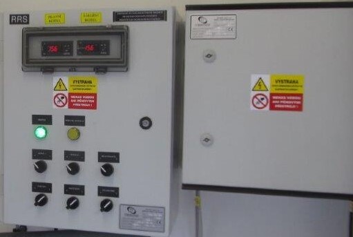 - pro řízení výstupní teploty plynu snímané odporovým snímačem teploty Pt 100 je osazen PID elektronický regulátor teploty typ K38 výrobce Ascon Technologic (jeden nebo dva podle předehřívače) ovládající výkon předehřívače přes polovodičová relé
